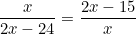 Обозначим расстояние между пунктами как 2х. Тогда за то время, пока первый турист проходит x км, второй проходит 2х-24 км. А пока первый проходит 2х-15 км, второй преодолевает х км. Т.к. отношение пройденных расстояний равно отношению скоростей, а двигались они равномерно, получим пропорцию: